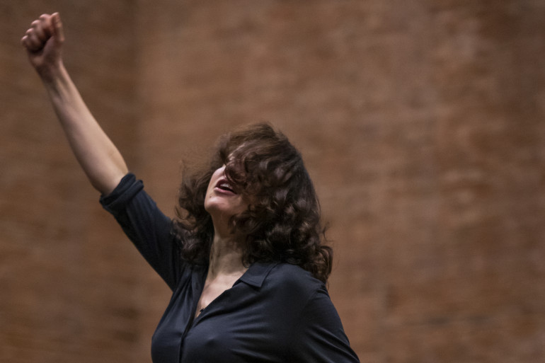 Celle qui marche c’est Gradiva, figure d’un bas-relief antique que nous connaissons tous pour l’avoir croisée dans nos livres d’histoire. La danseuse Stéphanie Fuster l’a redécouverte chez les surréalistes, puis dans un musée du Vatican, enfin sous la plume de Jensen et de Freud. Elle a été saisie par sa grâce et sa détermination au point de vouloir « se nourrir de sa présence et marcher dans son sillon ».