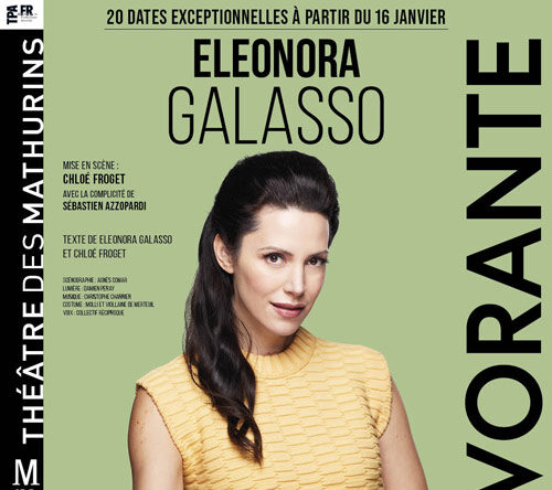 Dévorante, Texte : Eleonora Galasso et Chloé Froget – Mise en scène : Chloé Froget – Avec la complicité de Sébastien Azzopardi, visuel Affiche – vu le 20 Février 2024 au Mathurins